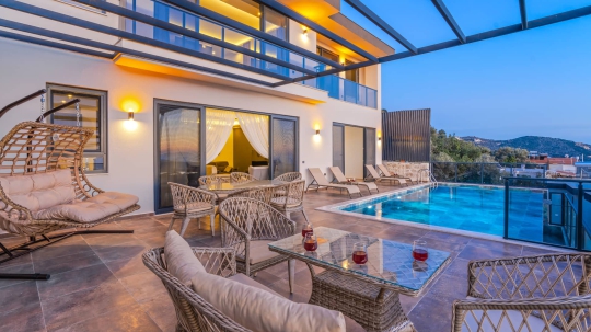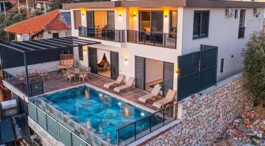 Villa Azra, Kalkan'ın doğal güzellikleri içinde unutulmaz anlar yaşamak isteyen aileler ve arkadaş grupları için idealdir. Kendi özel havuzunuzun keyfini çıkarırken, lüksün ve rahatlığın tadını çıkarın. Kalkan'ın büyüsüne kapılacağınız bu özel tatil deneyimi için sizleri bekliyoruz.