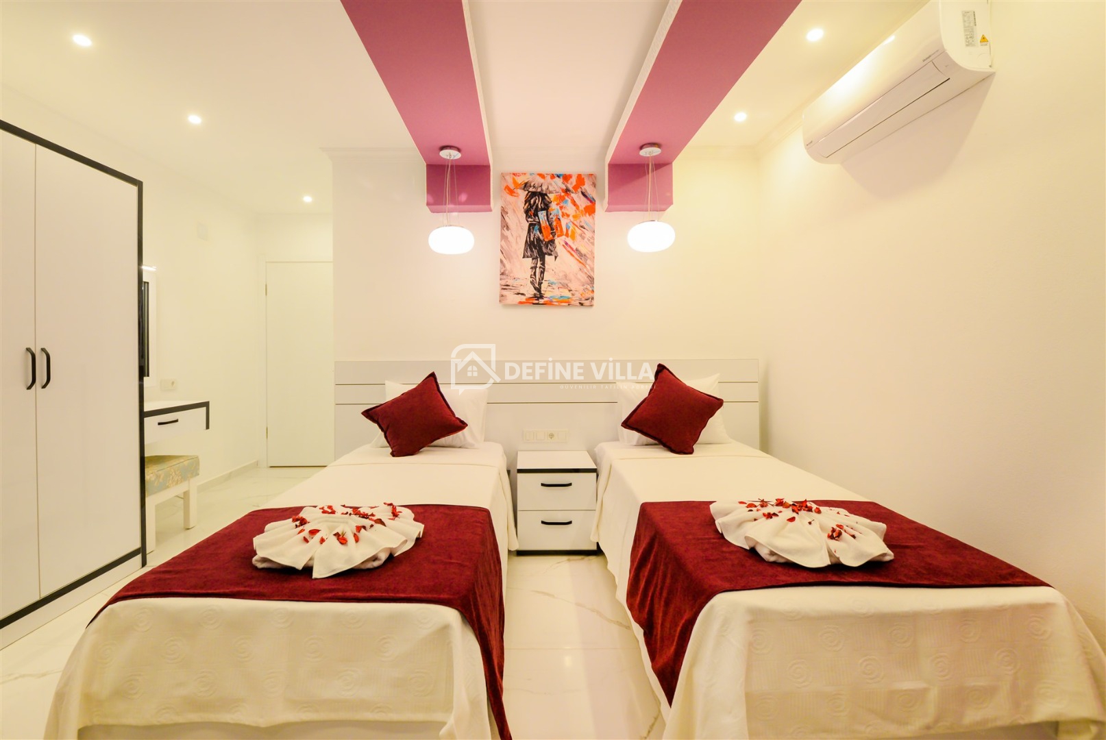 Günlük Havuz Bakımı : Misafirlerin havuzdan kaynaklı bir sağlık problemi yaşamaması için havuzlar her sabah 06.00 - 08.00 saatleri arasında bir görevli tarafından kontrol edilmektedir. Bu saatlerde günlük havuz bakımı tamamlanmış olarak, bahçe sulama ve çöp alma hizmeti sunulmaktadır. İçerisinde Isıtmalı Kapalı Havuzu olan villa seçeneklerimizde havuz temizliği otomatik klorlama sistemi sayesinde yapılmaktadır. Isıtmalı havuzlarımız 27-30 derece civarlarında ısınmaktadır. 30 derece üstünde bakteri oluşması hızlandığı için sağlığınız açısından daha sıcak hale getirilememektedir.