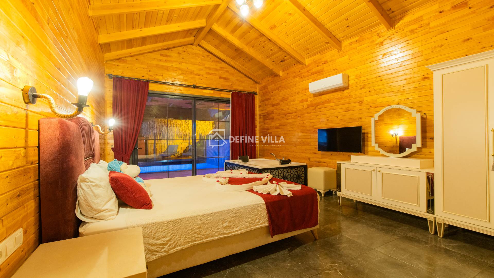 Özel yüzme havuzu ve jakuzisi bulunan villamız, mahremiyete önem veren misafirler düşünülerek tasarlanmıştır. Bu özelliği sayesinde tesettürlü bayanlar, balayı çiftleri ve gözlerden uzak, sakin bir tatil geçirmek isteyen misafirler için tercih edilebilecek villa seçenekleri arasında yer almaktadır.