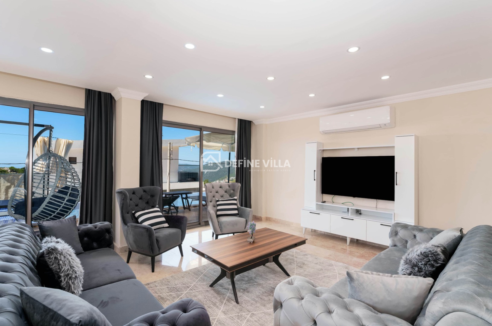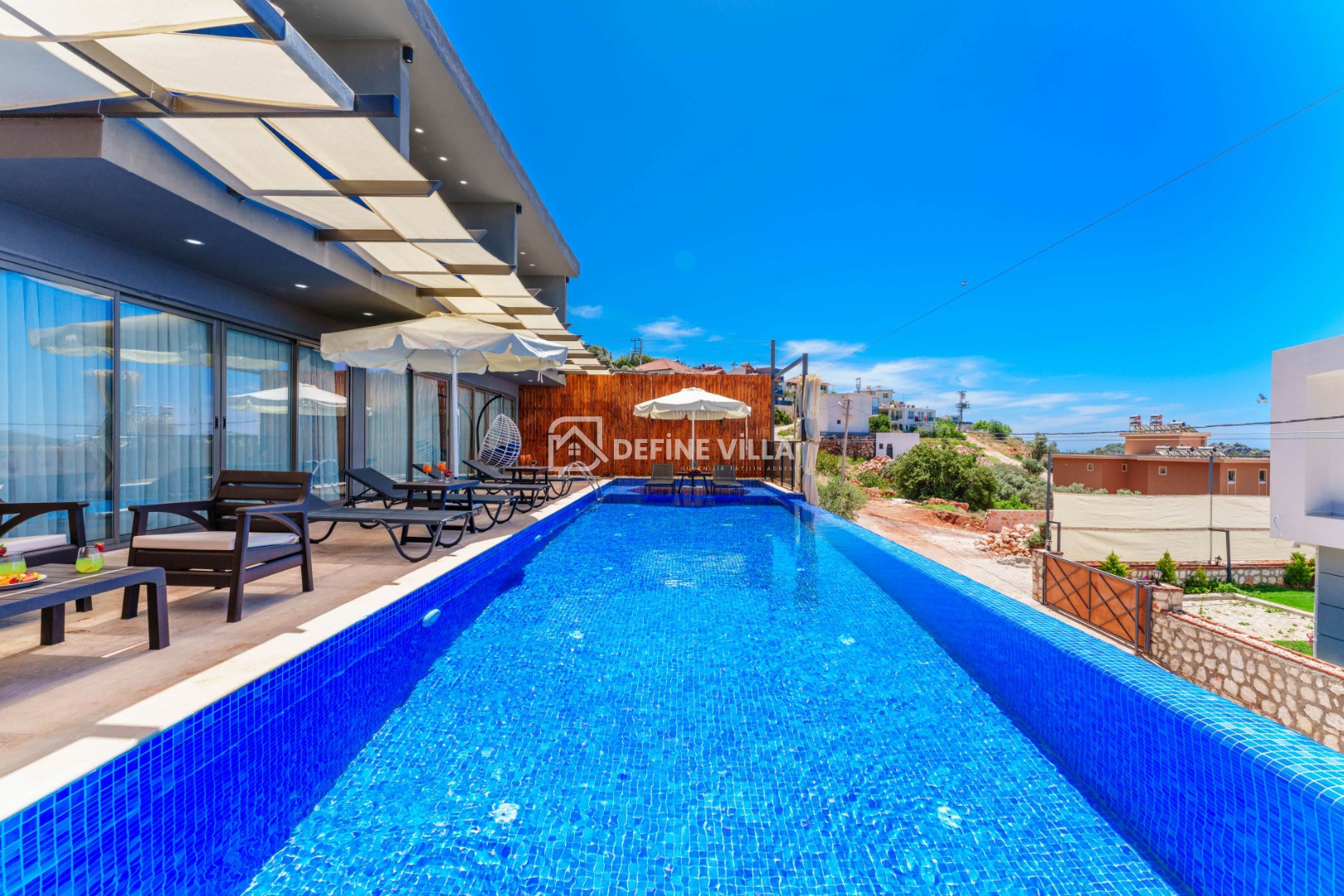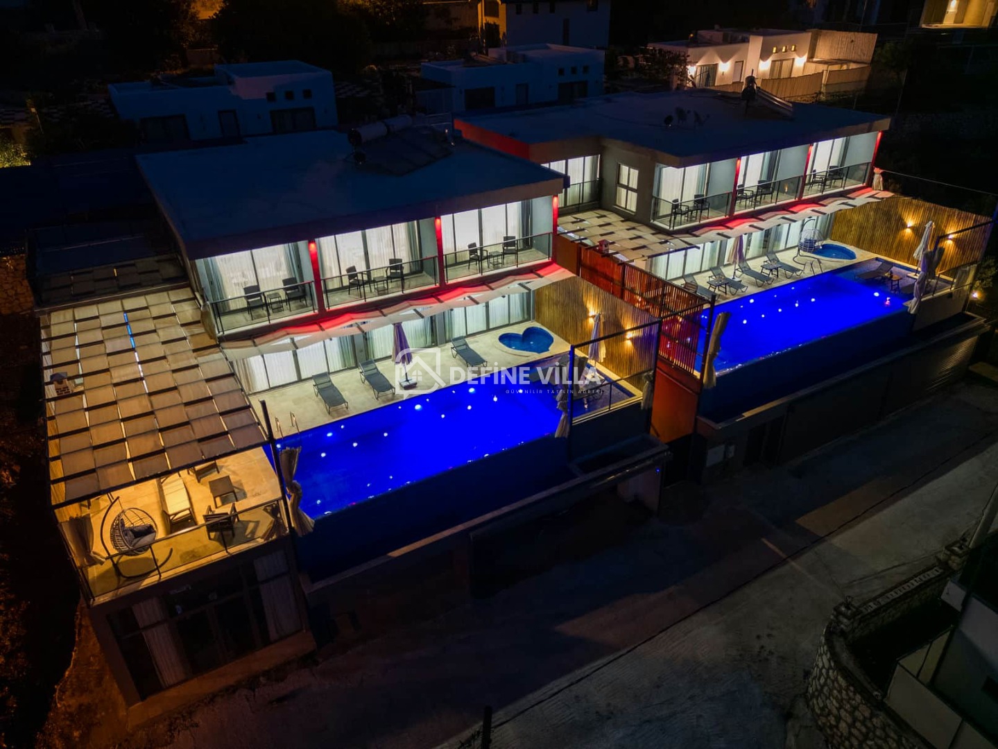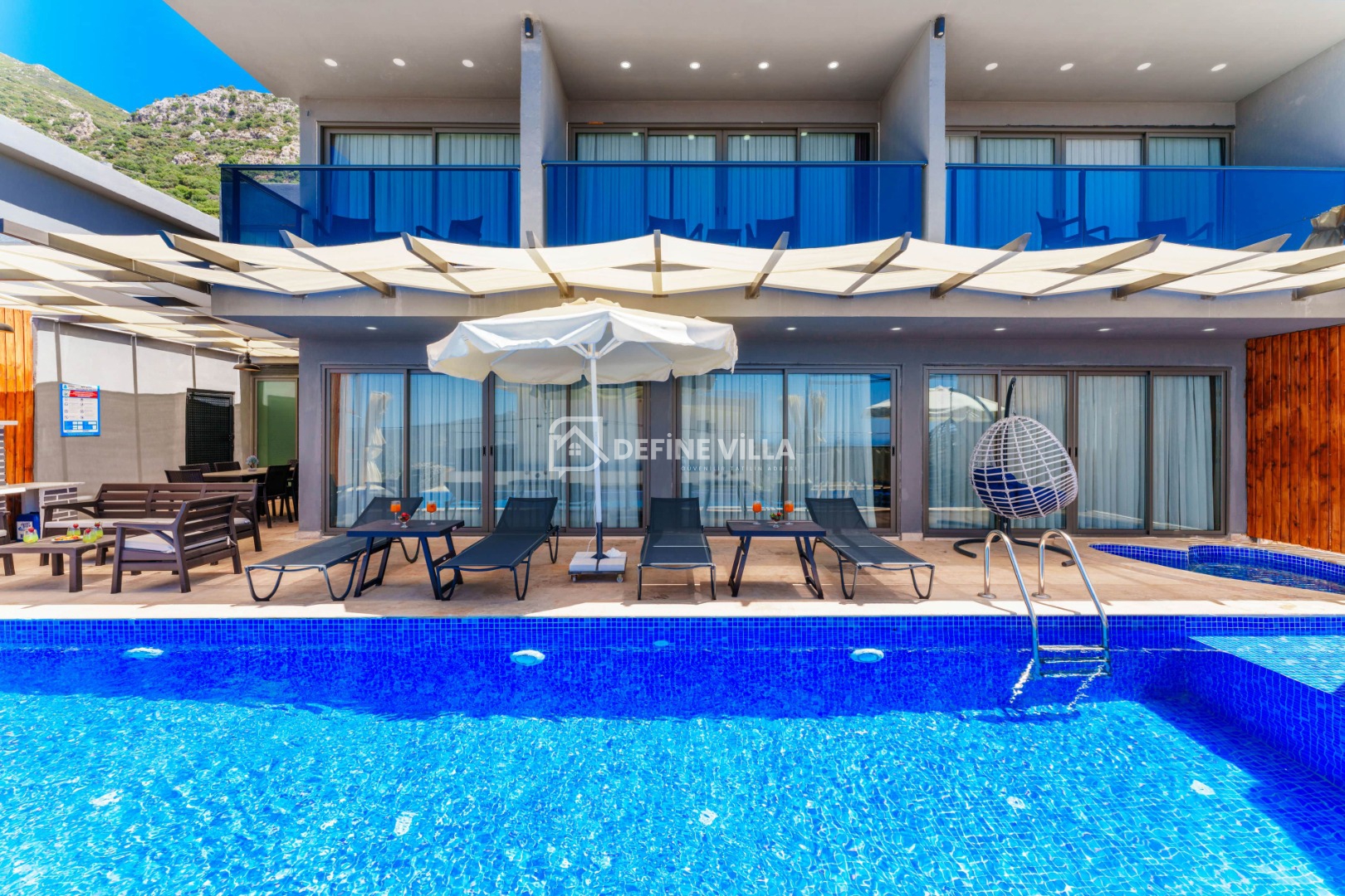 Villa Grand Emora 1, Kalkan’ın Kördere bölgesinde konumlanan, 5 yatak odası ve 10 kişilik konaklama kapasitesiyle öne çıkan lüks villalarımızdan biridir. Modern mimarisi ve şık tasarımıyla dikkat çeken villamız, mavinin huzur veren tonları eşliğinde misafirlerine üst düzey bir tatil deneyimi sunmaktadır. Deniz manzaralı yapısı sayesinde kalabalık aileler ve arkadaş grupları için son derece ideal bir konaklama alternatifidir.
