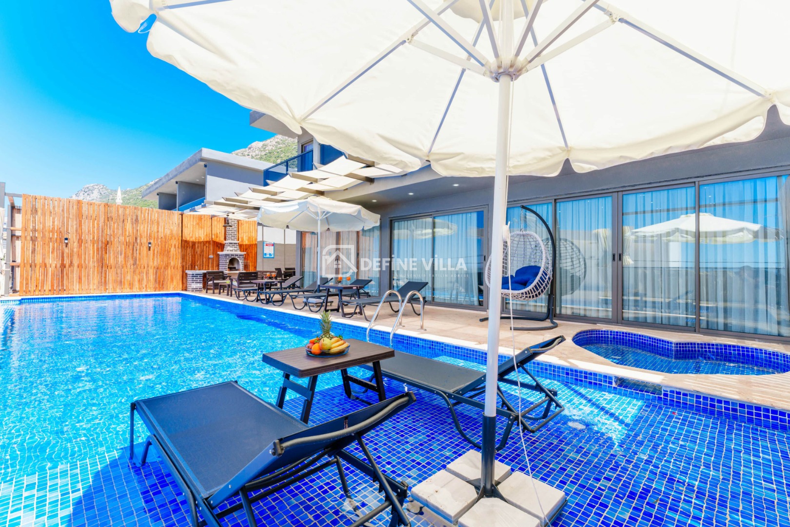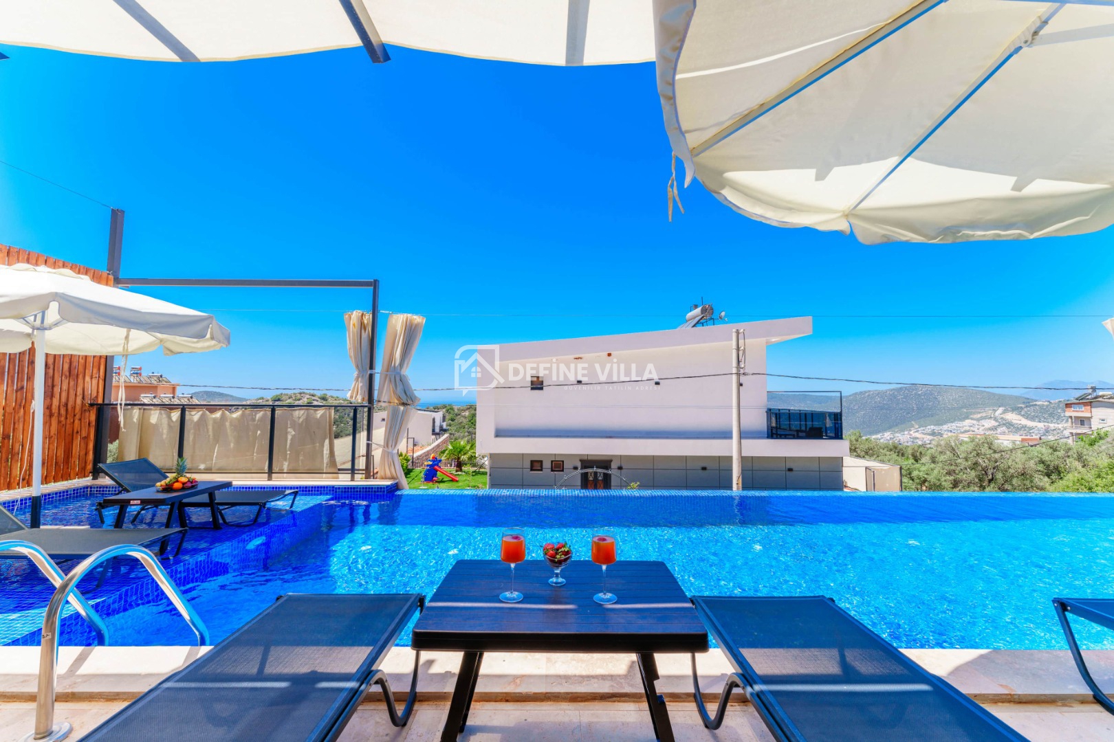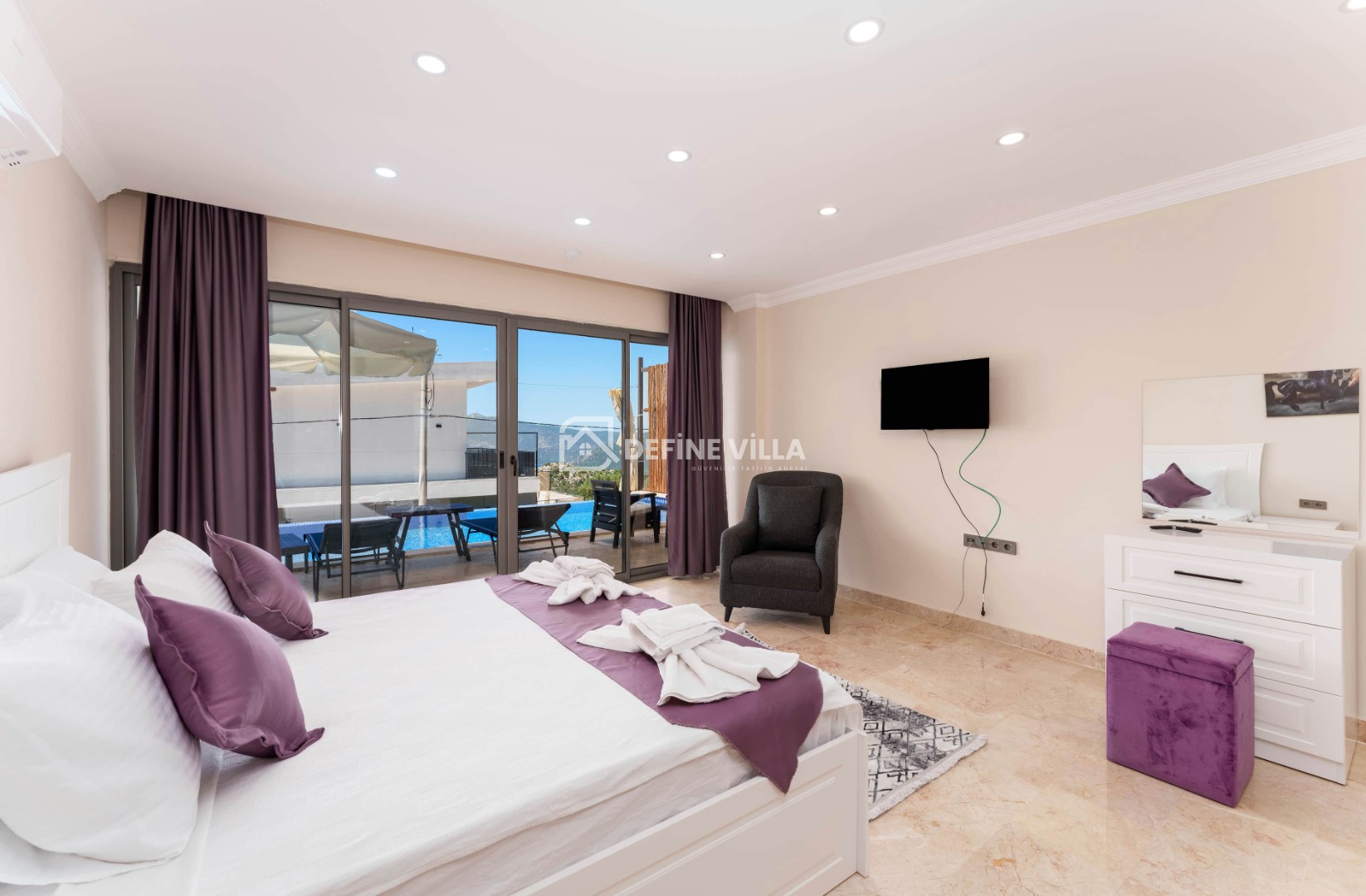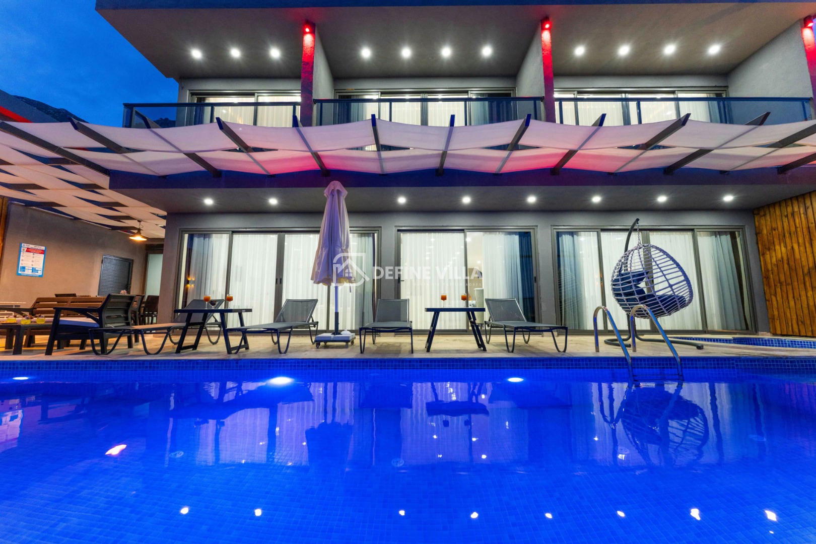 Villa Grand Emora 1, Kalkan’ın Kördere bölgesinde konumlanan, 5 yatak odası ve 10 kişilik konaklama kapasitesiyle öne çıkan lüks villalarımızdan biridir. Modern mimarisi ve şık tasarımıyla dikkat çeken villamız, mavinin huzur veren tonları eşliğinde misafirlerine üst düzey bir tatil deneyimi sunmaktadır. Deniz manzaralı yapısı sayesinde kalabalık aileler ve arkadaş grupları için son derece ideal bir konaklama alternatifidir.