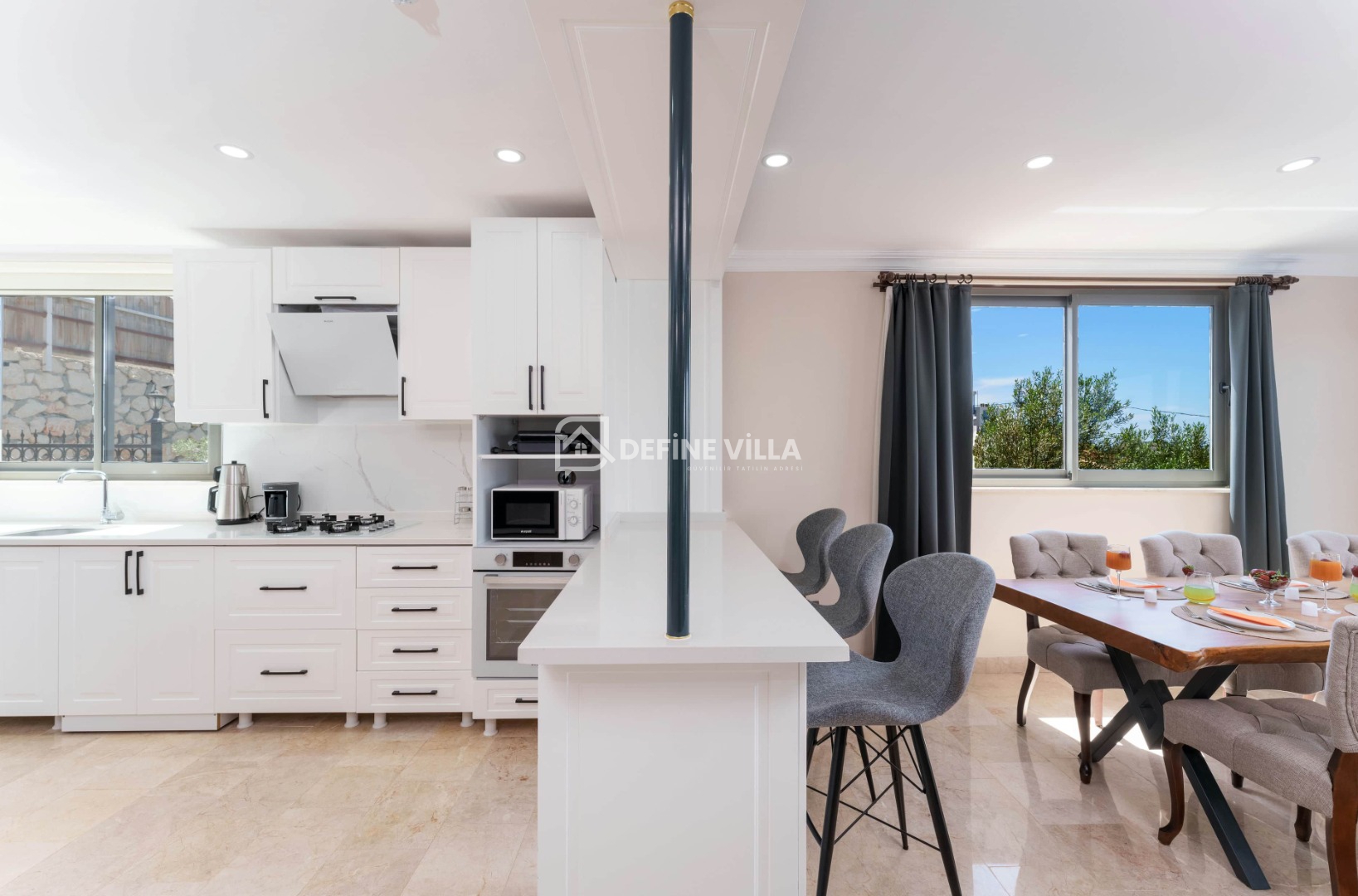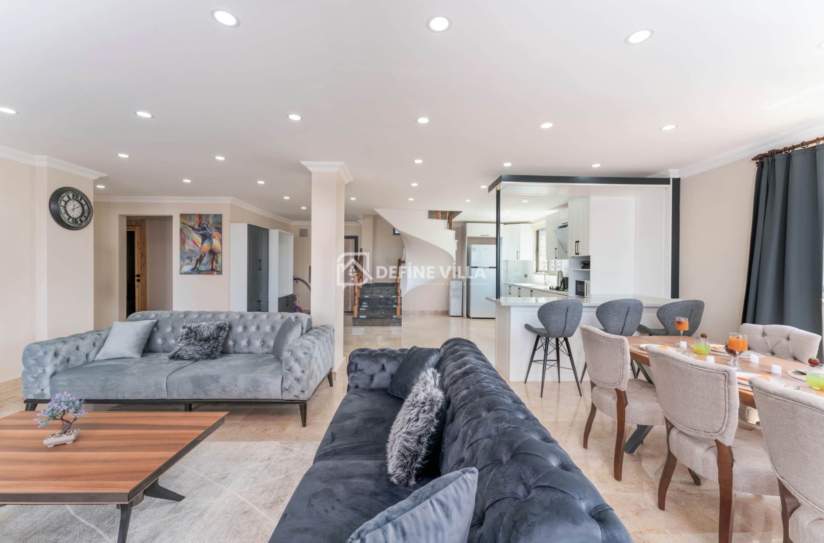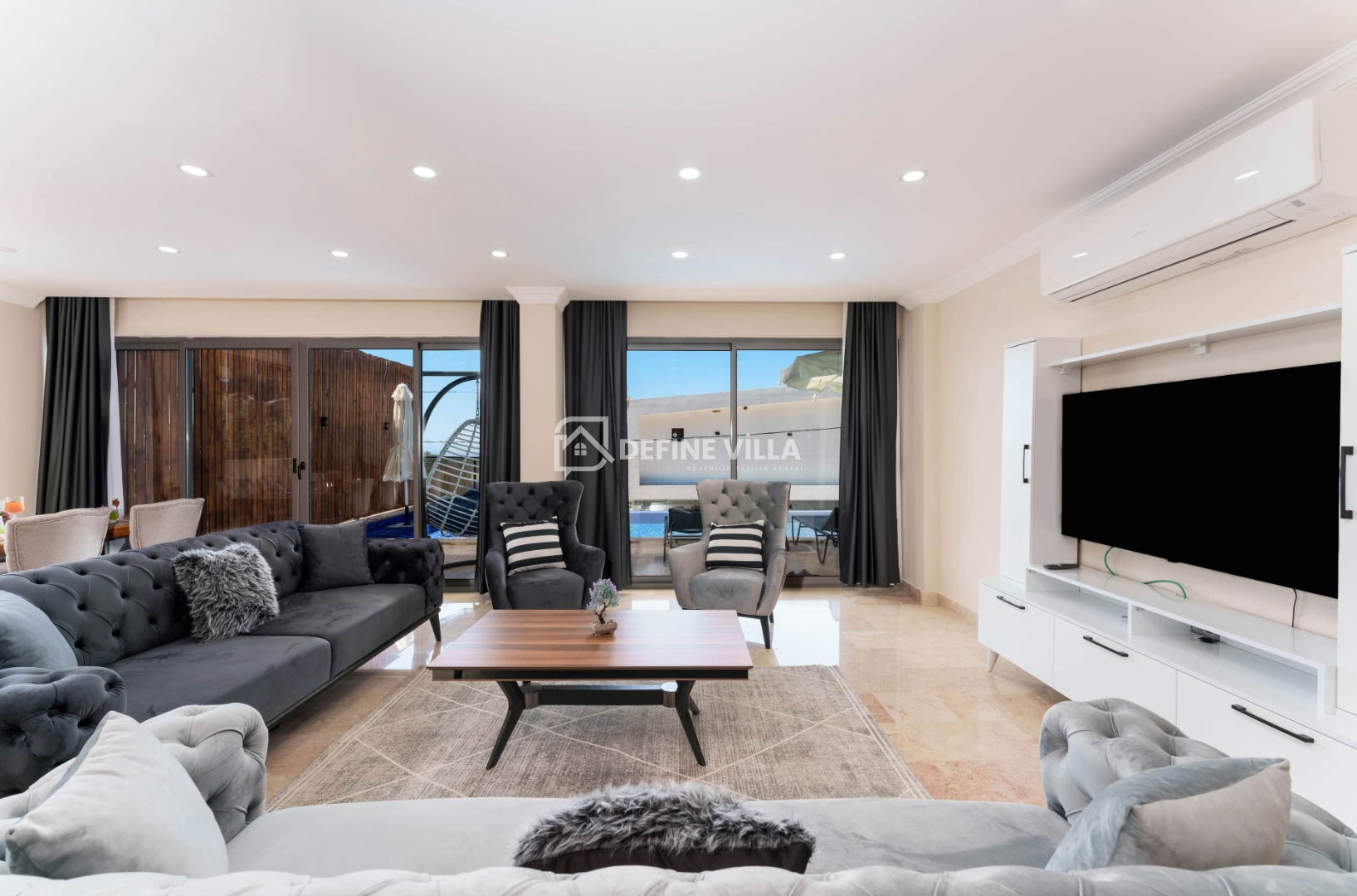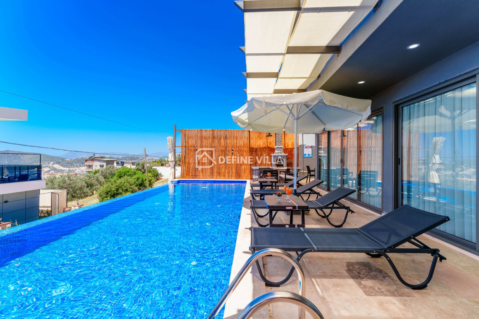 Villa Grand Emora 1, Kalkan’ın Kördere bölgesinde konumlanan, 5 yatak odası ve 10 kişilik konaklama kapasitesiyle öne çıkan lüks villalarımızdan biridir. Modern mimarisi ve şık tasarımıyla dikkat çeken villamız, mavinin huzur veren tonları eşliğinde misafirlerine üst düzey bir tatil deneyimi sunmaktadır. Deniz manzaralı yapısı sayesinde kalabalık aileler ve arkadaş grupları için son derece ideal bir konaklama alternatifidir.