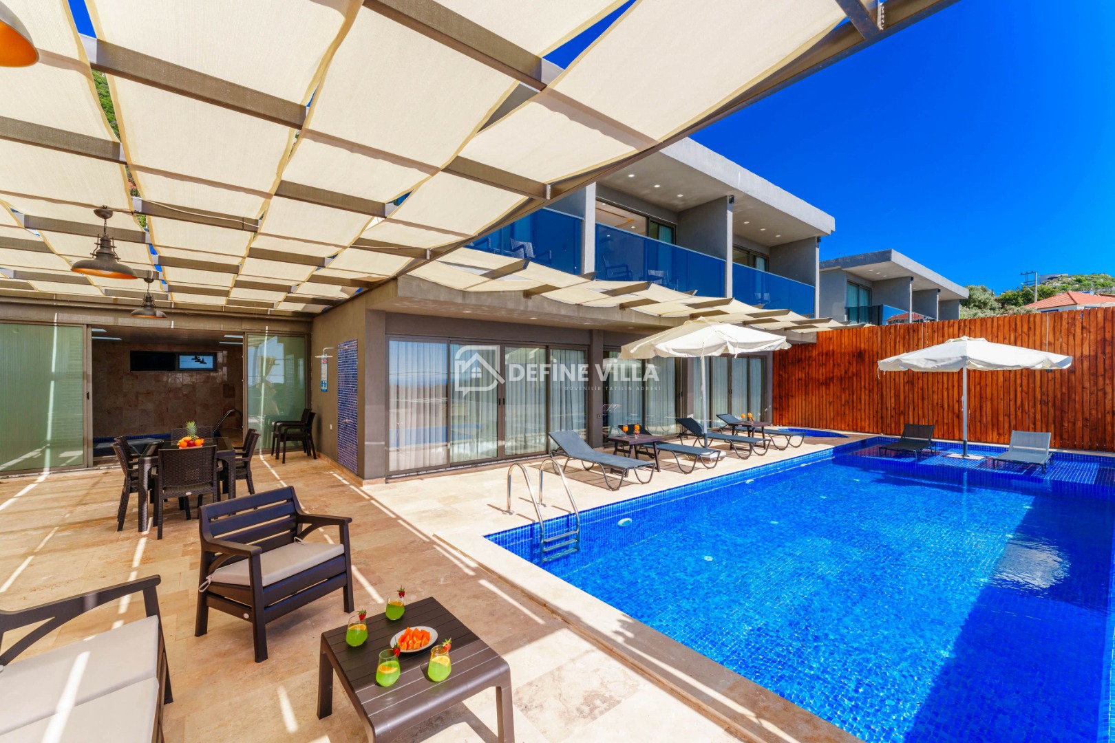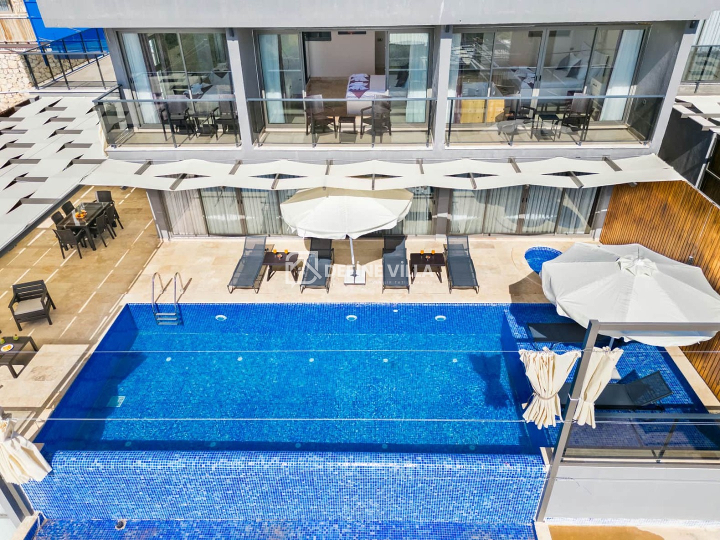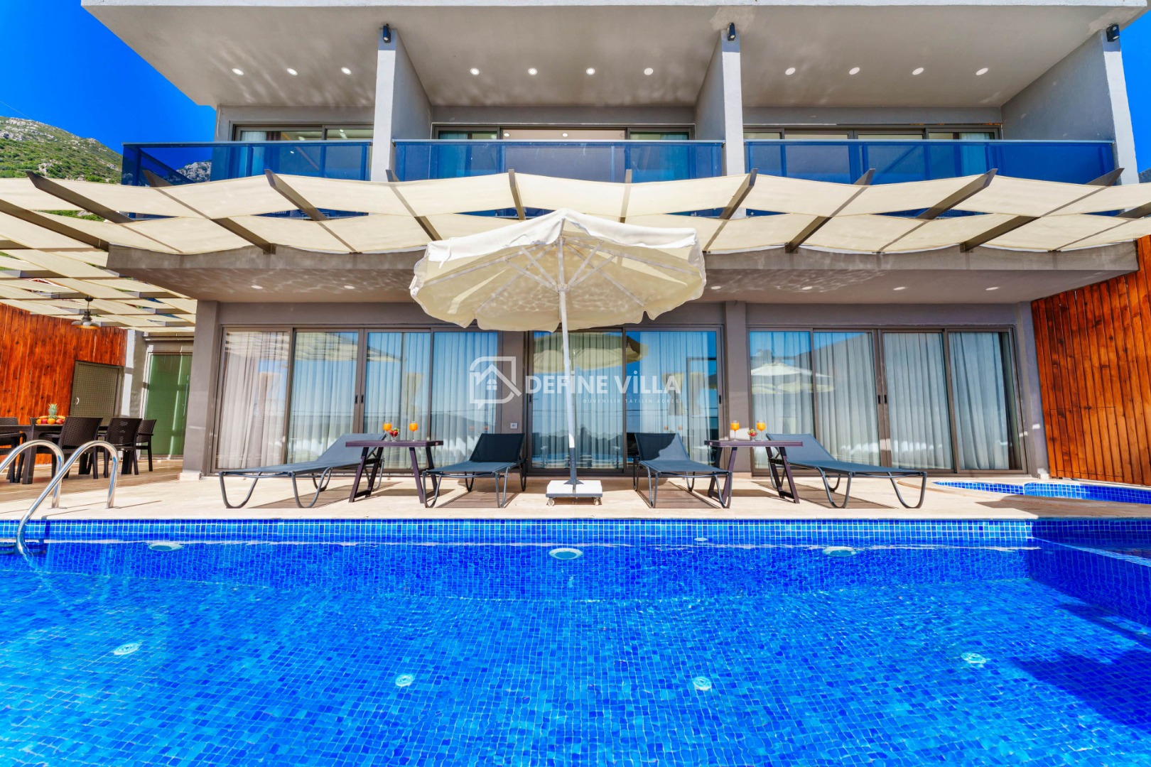 Villa Grand Emora 2, Kalkan’ın Kördere bölgesinde konumlanan, 4 yatak odası ve 8 kişilik konaklama kapasitesiyle öne çıkan lüks villalarımızdan biridir. Modern mimarisi ve zarif tasarımıyla dikkat çeken villamız, mavinin büyüleyici manzarası eşliğinde misafirlerine ayrıcalıklı bir tatil deneyimi sunmaktadır. Deniz manzaralı yapısı sayesinde kalabalık aileler ve arkadaş grupları için ideal bir konaklama alternatifidir.