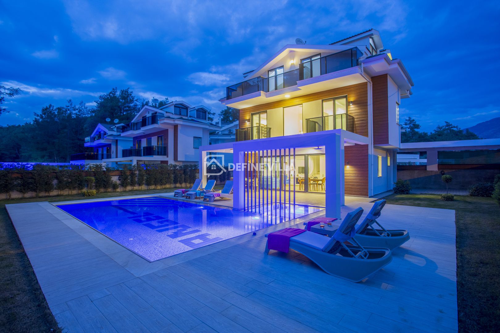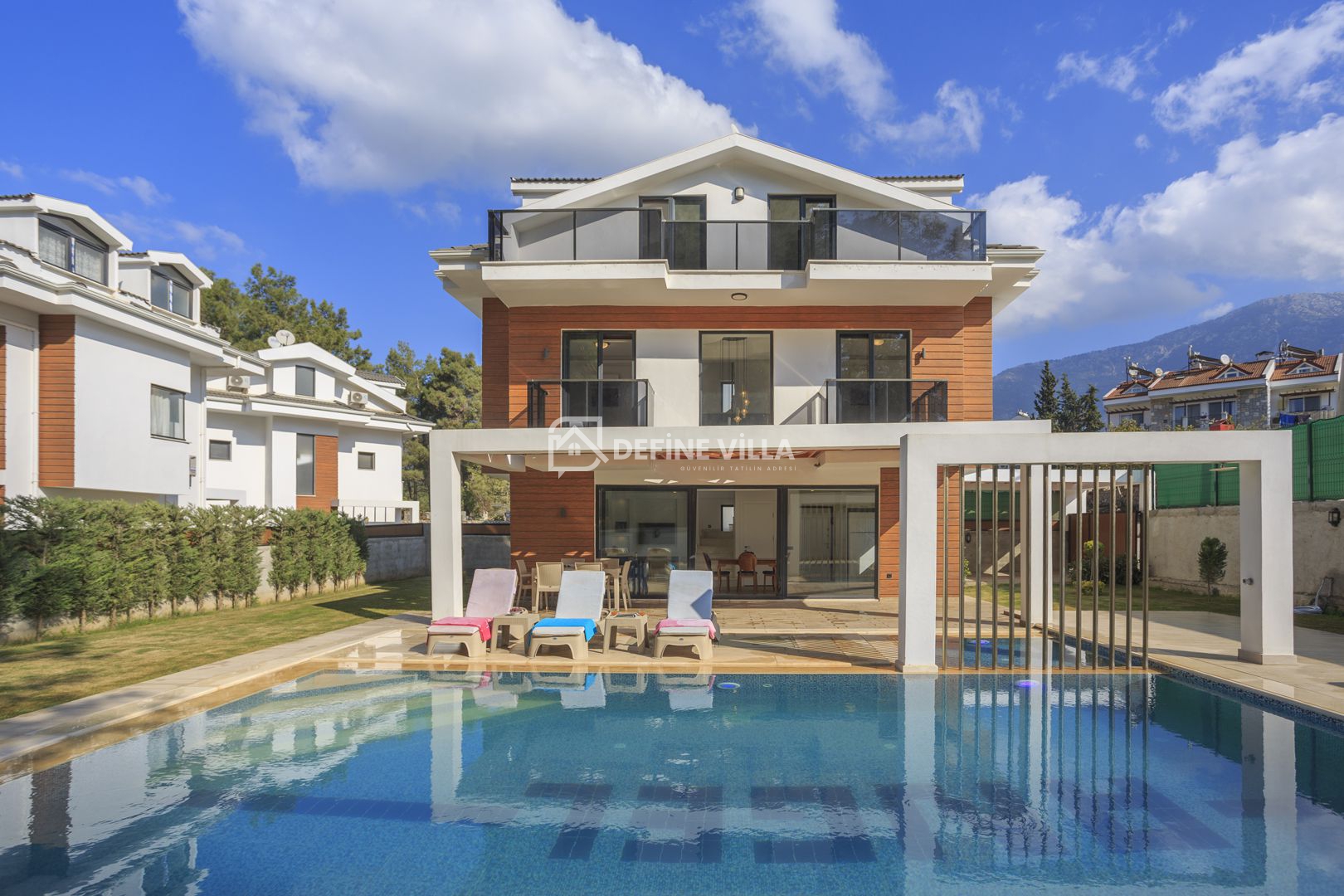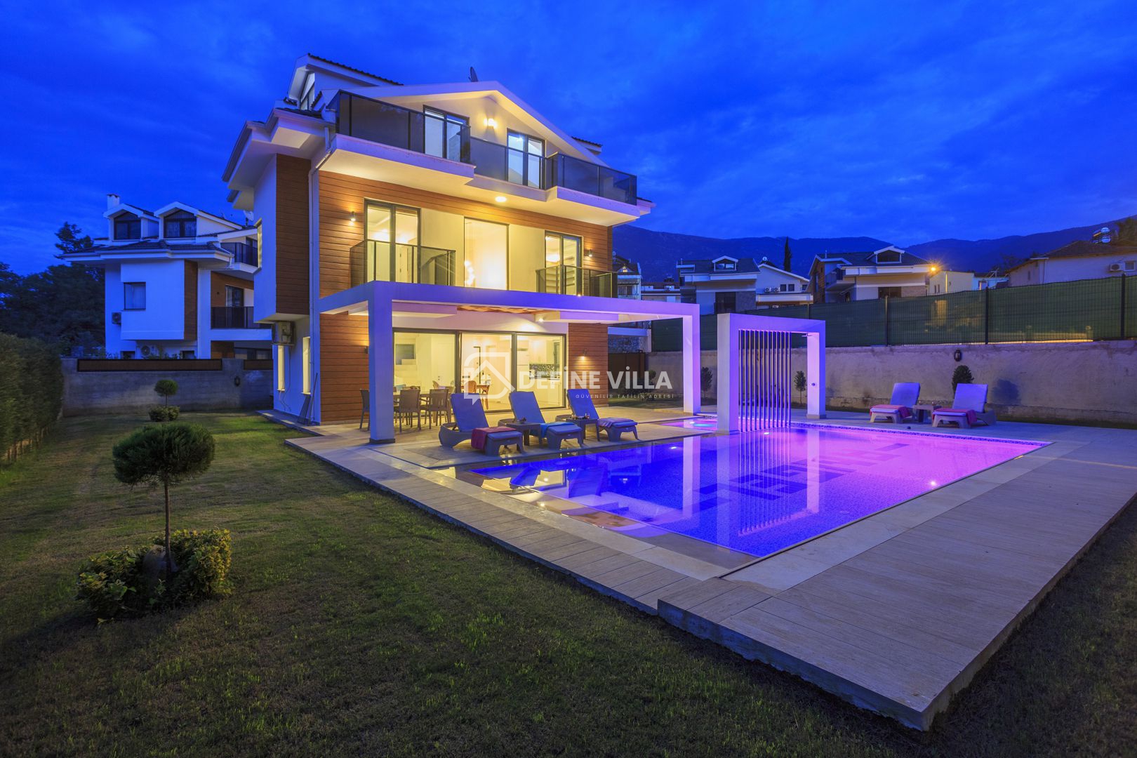 Hisar Prestige Villa A, Fethiye’nin Hisarönü bölgesinde konumlanan, modern mimarisi ve şık tasarımıyla öne çıkan özel villalarımızdan biridir. Çam ormanlarına karşı konumlanmış olması sayesinde ferah ve huzur veren bir manzaraya sahiptir.