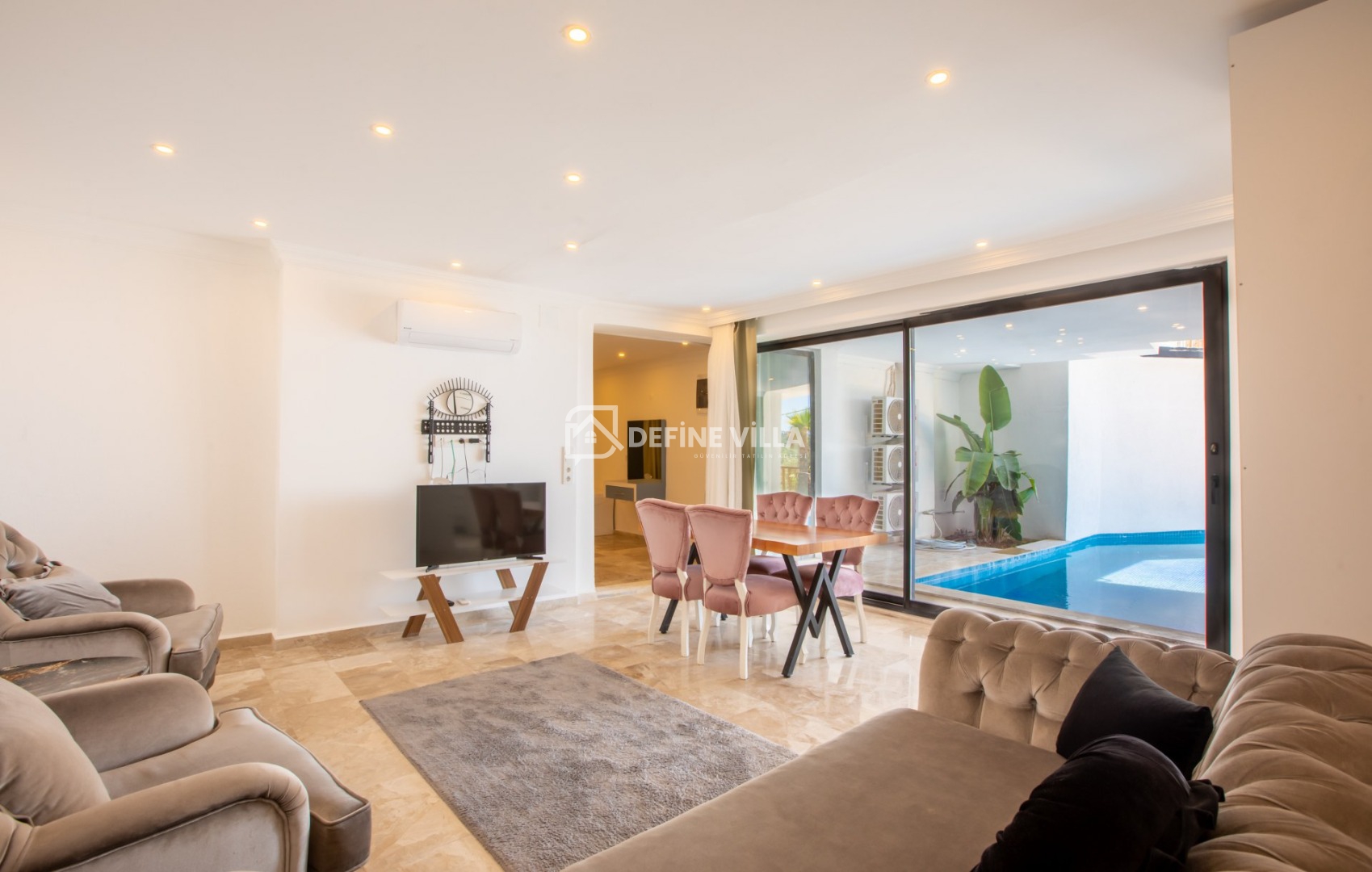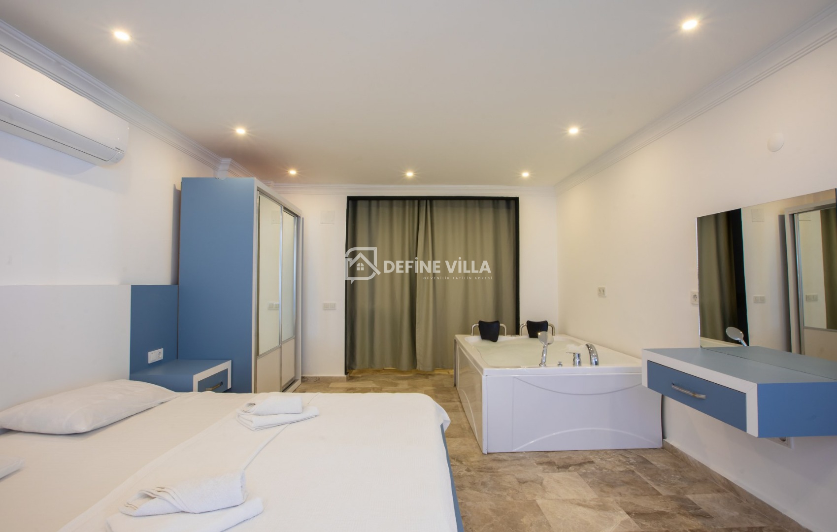 Modern ve şık tasarımıyla dikkat çeken villamız, deniz manzarasına hâkim konumu sayesinde günün her anında eşsiz manzaralar sunar. Konforlu yaşam alanları, keyifli vakit geçirebileceğiniz sinema odası ve rahatlatıcı jakuzisi ile tatilinize ayrıcalık katar.