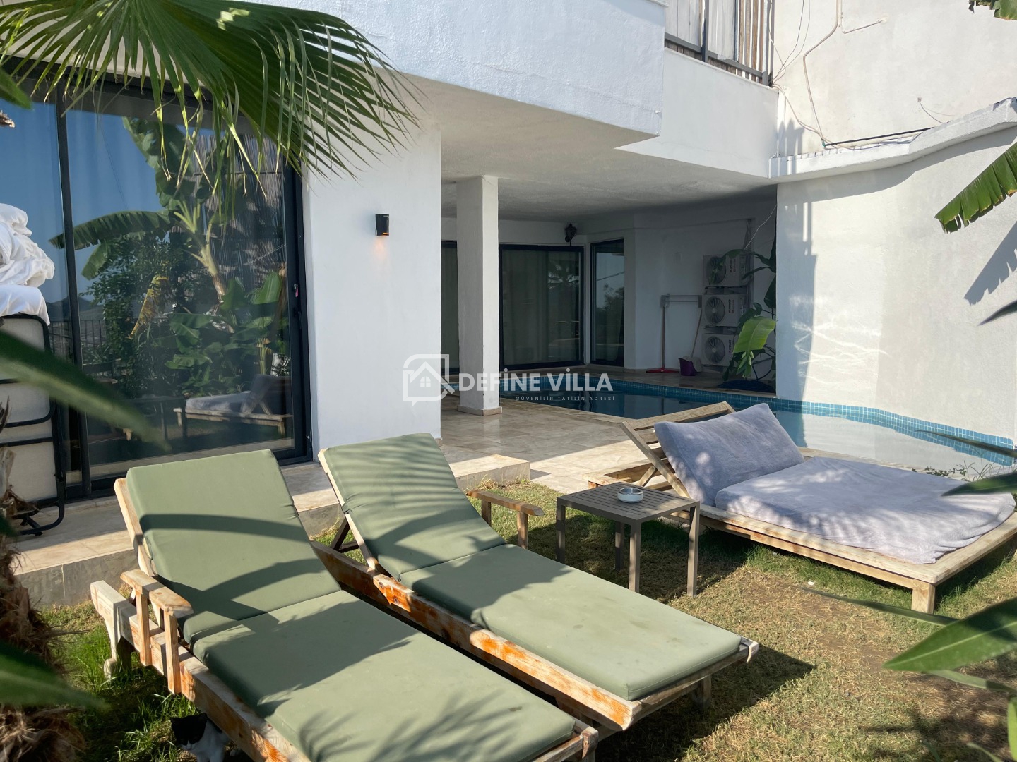 Giriş - Çıkış Saatleri : Villaya giriş saati giriş günü 16.00 dır. Temizliği erken bitmiş olan villalarda ya da evvelki gün boş olan villalarda daha erken giriş yapılabilmektedir. Çıkış saati Çıkış günü saat 10.00 dur. Çıkış ve giriş saatleri arasında villanın genel temizliği, çarşafların yıkanarak değişimi, haftalık bahçe bakımı ve haftalık havuz bakımı yapılmaktadır.