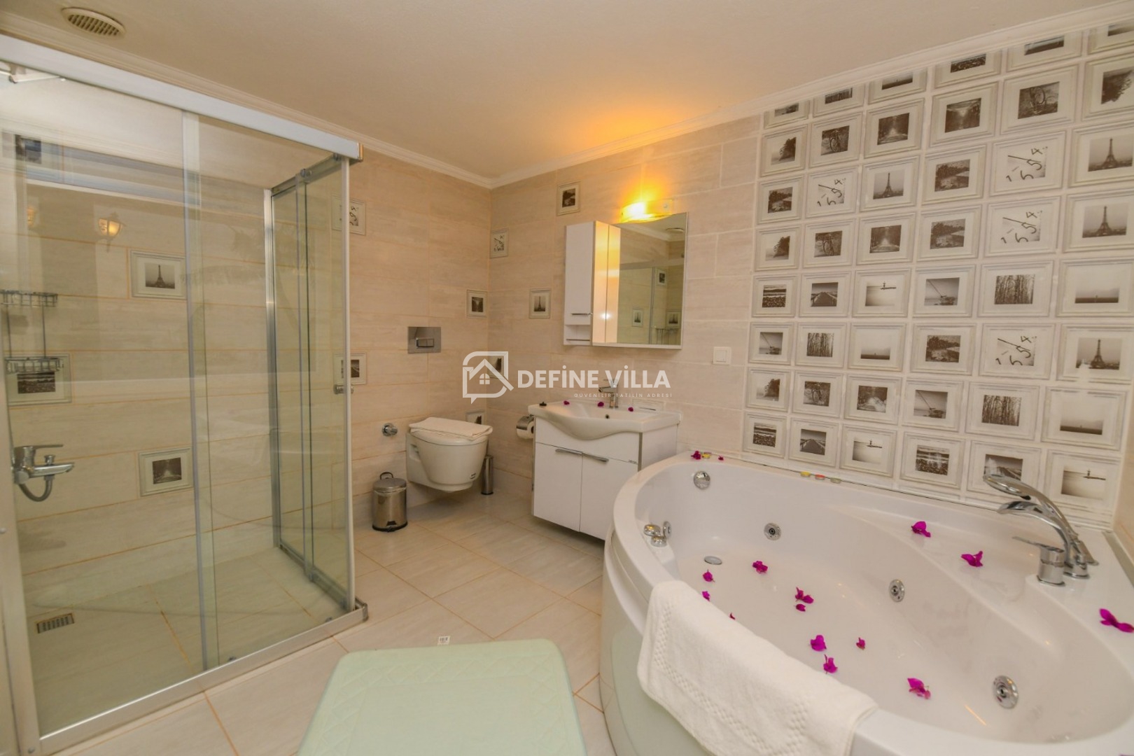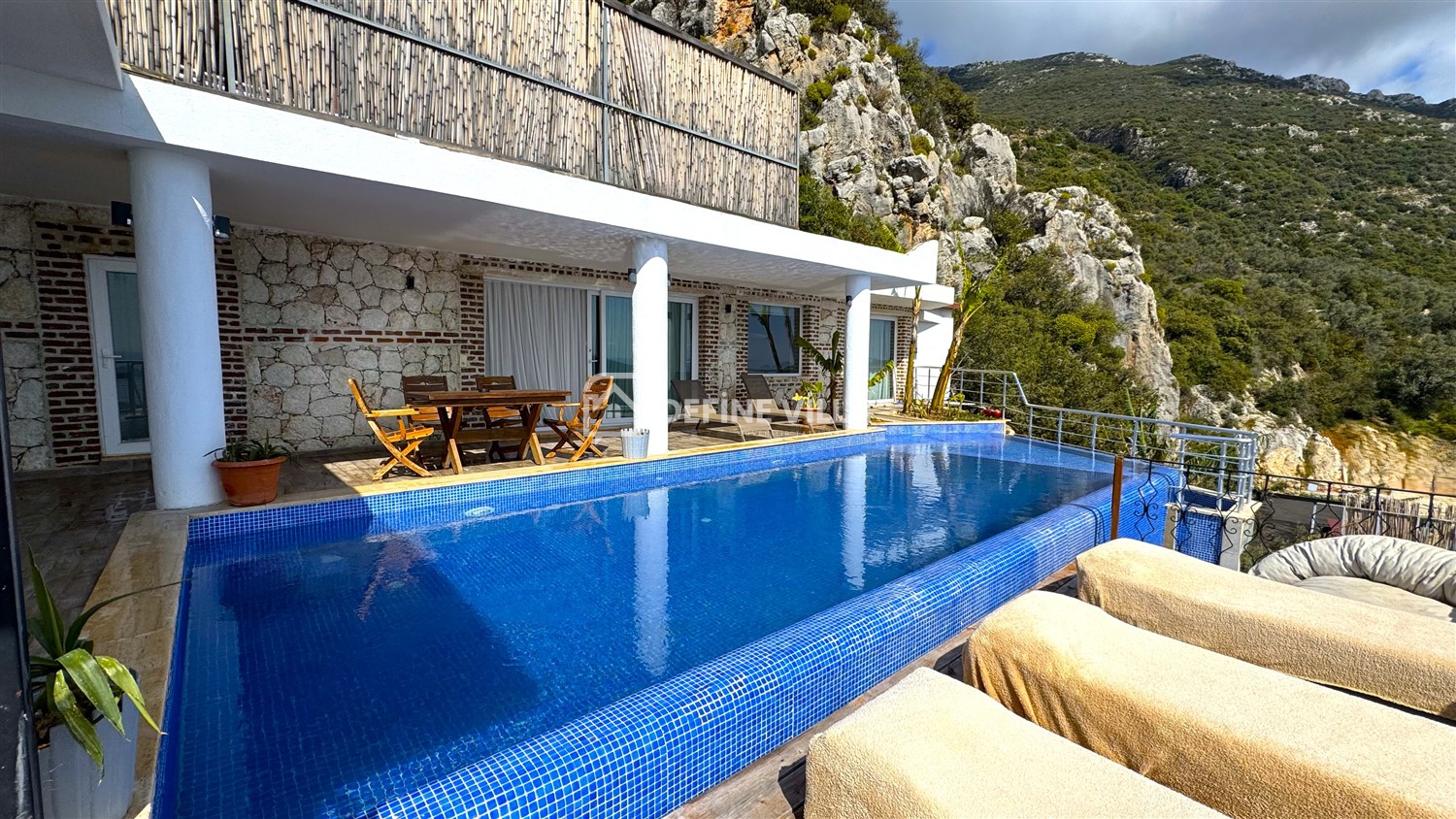 Ferah ve konforlu yaşam alanlarıyla aileler ve arkadaş grupları için ideal olan villamız, manzaraya hâkim konumu sayesinde gün boyu Akdeniz’in eşsiz maviliğini sunar. Tatilinize keyif ve rahatlık katan jakuzisi, dinlenme anlarınızı daha ayrıcalıklı hale getirir.