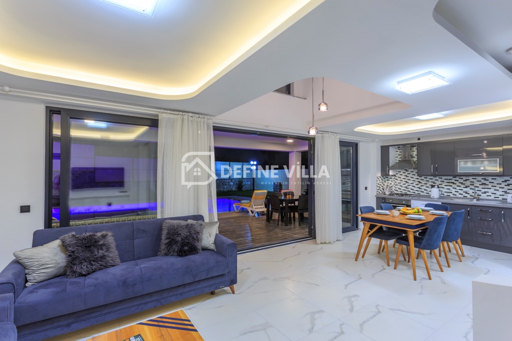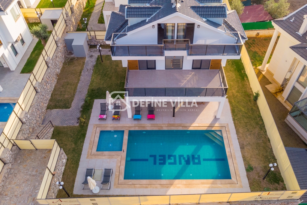 Villada 4 adet ebeveyn banyolu yatak odası bulunmakta olup, müstakil bahçesi ve özel yüzme havuzu ile misafirlerine konforlu ve özgür bir konaklama alanı sağlamaktadır. Geniş ve ferah yapısıyla kalabalık aileler ve arkadaş grupları için ideal bir seçenektir.
