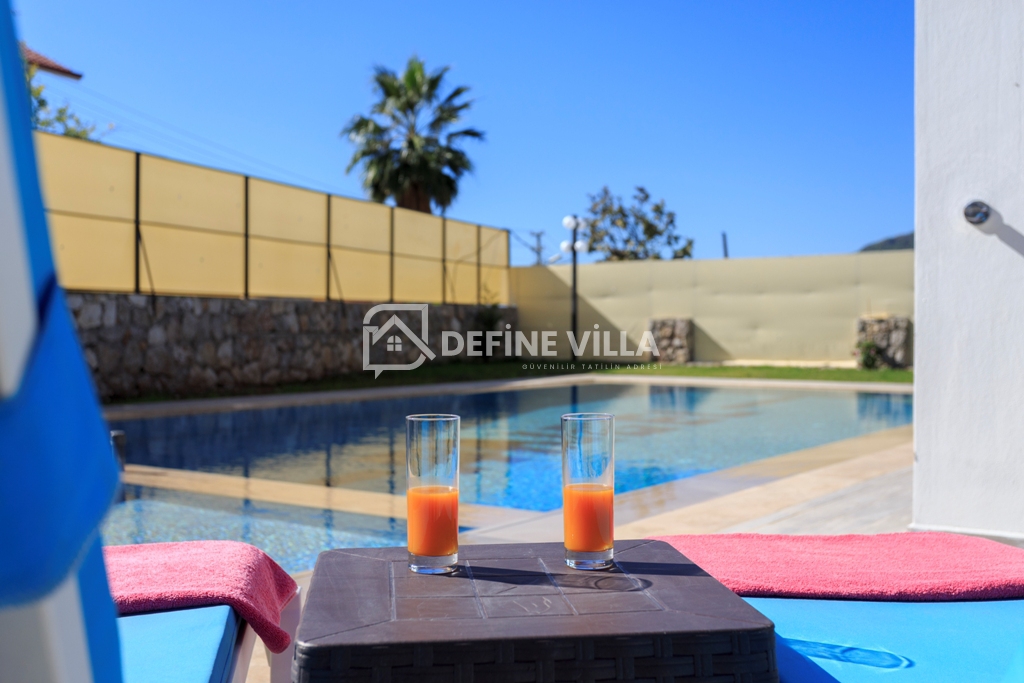 Giriş - Çıkış Saatleri : Villaya giriş saati giriş günü 16.00 dır. Temizliği erken bitmiş olan villalarda ya da evvelki gün boş olan villalarda daha erken giriş yapılabilmektedir. Çıkış saati Çıkış günü saat 10.00 dur. Çıkış ve giriş saatleri arasında villanın genel temizliği, çarşafların yıkanarak değişimi, haftalık bahçe bakımı ve haftalık havuz bakımı yapılmaktadır.