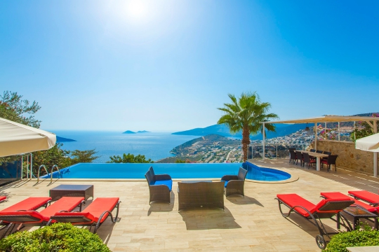 Kalkan'ın Kızıltaş mevkiinde büyüleyici manzarasına hakim kiralık villamız, geniş aileler ve arkadaş grupları için mükemmel bir konaklama seçeneğidir. Villa Yirmi 5 yatak odası ile 10 kişiye kadar konuk ağırlayabilme kapasitesiyle, unutulmaz bir tatil deneyimi vaat ediyor. Havuz terasından başlayarak tüm katlardan eşsiz Kalkan manzarasının keyfini çıkarabilirsiniz. Villa Yirmi; spor salonu, bilardo masası ve masa tenisi gibi çeşitli eğlence seçenekleri sunarak tatilinizi hem rahatlatıcı hem de eğlenceli hale getirmenize imkan sağlıyor.