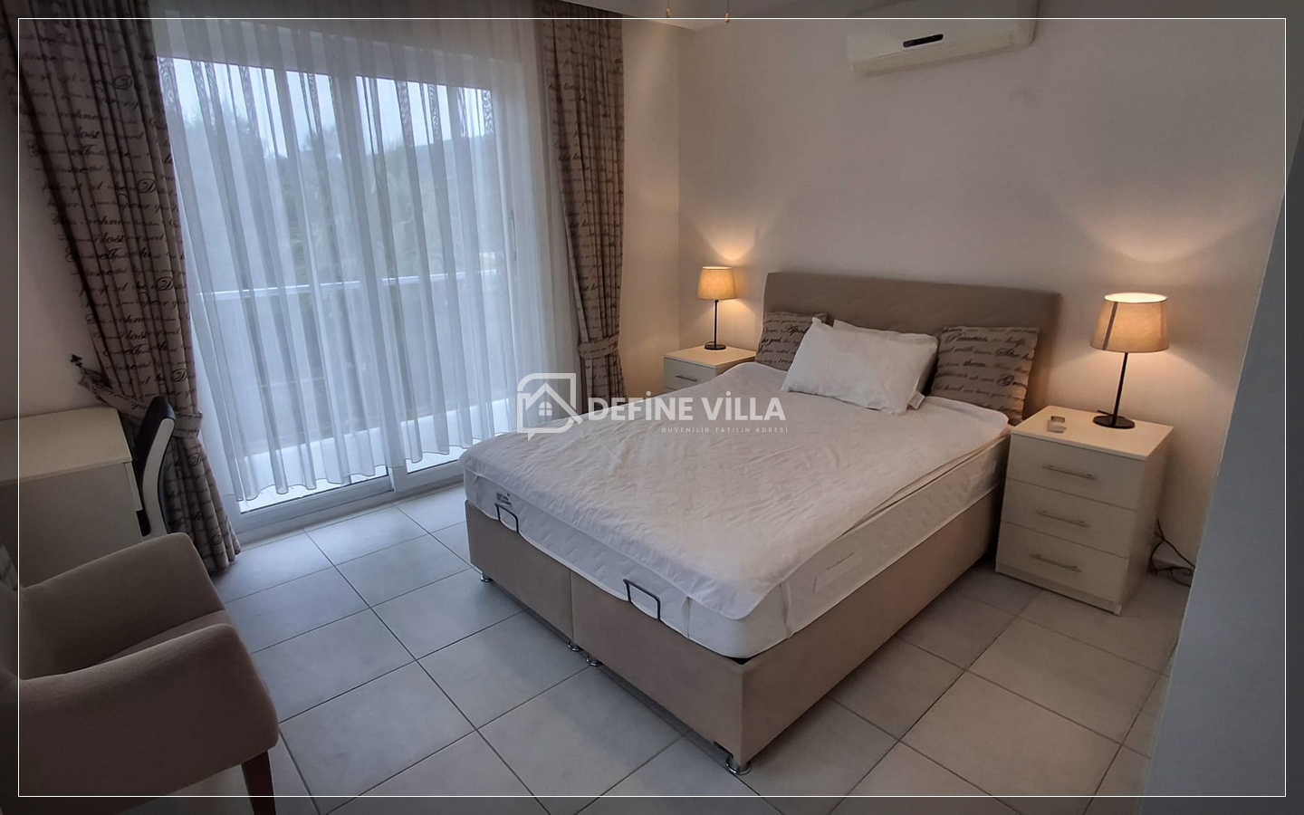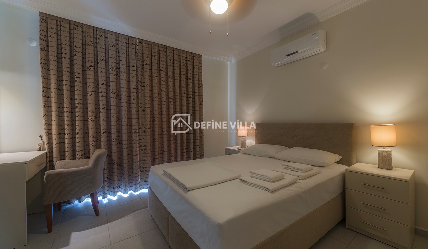 Four Season Villa’da 4 geniş yatak odası yer almakta olup; 3 adet çift kişilik, 1 adet iki tek yataklı oda bulunmaktadır. Tüm odalar ebeveyn banyolu, klimalı ve manzaralı balkonlara sahiptir. Villada hızlı ve ücretsiz Wi-Fi, Netflix ve İngiliz TV kanallarını izleyebileceğiniz televizyon bulunmaktadır.