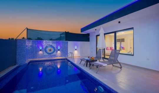 Villa Ah-Dem, Kalkan’ın Üzümlü mevkiinde konumlanan, 2 kişilik konaklama kapasitesine sahip, korunaklı ve şirin bir balayı villasıdır. Özel olarak tasarlanmış korunaklı havuz terası sayesinde balayı çiftleri için son derece ideal bir konaklama seçeneği sunmaktadır.