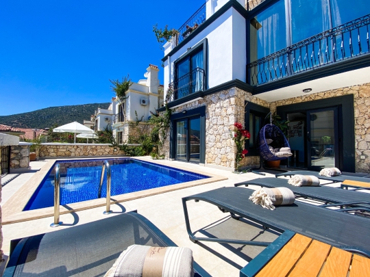 Villa Miko, Kalkan Kalamar mevkisinde 3 yatak odası 6 kişi kapasiteli deniz manzaralı ve plajlara yakın özel havuzlu tatil villasıdır.