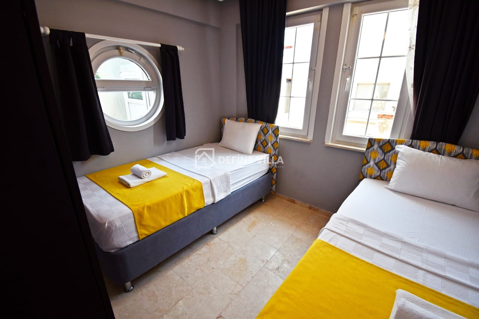 Villa Naz, sayfamızda yer alan Villa Nazan ile yan yana konumlanmış olup, her iki villa da birbirinin tıpatıp aynı mimarisine sahiptir.