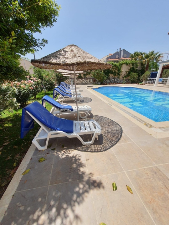 Villamızda 12 m x 6 m ölçülerinde, oldukça geniş ve müstakil bir yüzme havuzu bulunmaktadır. Havuz alanı dışarıya karşı yüksek derecede korunaklı olup, havuz derinliği 100 cm’den 160 cm’ye kadar kademeli olarak artmaktadır. Bu özellik hem yetişkinler hem de çocuklu aileler için güvenli ve rahat bir kullanım sunar.