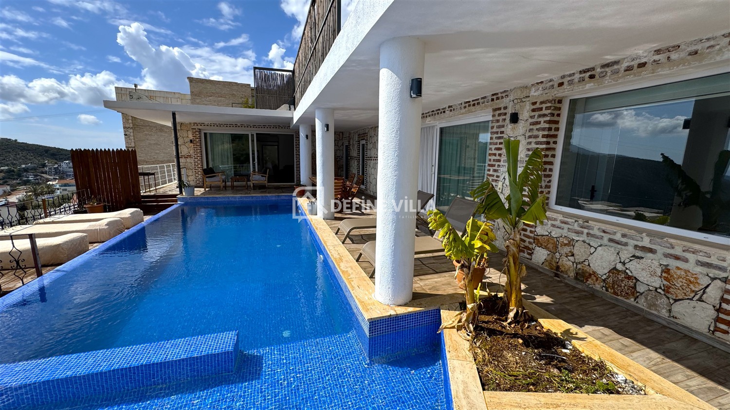 Ferah ve konforlu yaşam alanlarıyla aileler ve arkadaş grupları için ideal olan villamız, manzaraya hâkim konumu sayesinde gün boyu Akdeniz’in eşsiz maviliğini sunar. Tatilinize keyif ve rahatlık katan jakuzisi, dinlenme anlarınızı daha ayrıcalıklı hale getirir.