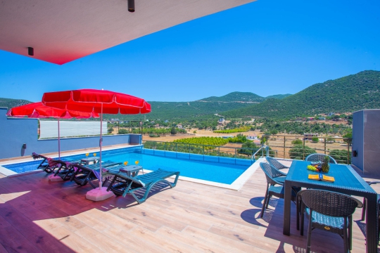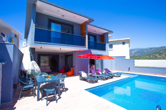 Villa Şimşek-2, Kaş Bayındır'da 2022 yapımı 3 yatak odası 6 kişilik kapasiteli özel havuzlu tatil villasıdır.Modern ve lüks tasarıma sahip evimizin ana yatak odasında jakuzi bulunmaktadır.3 odamızda da çift kişilik yatak bulunmaktadır.Havuz alanı kısmi korunaklıdır.Çocuklu aileler için çocuk havuzu bulunmaktadır.