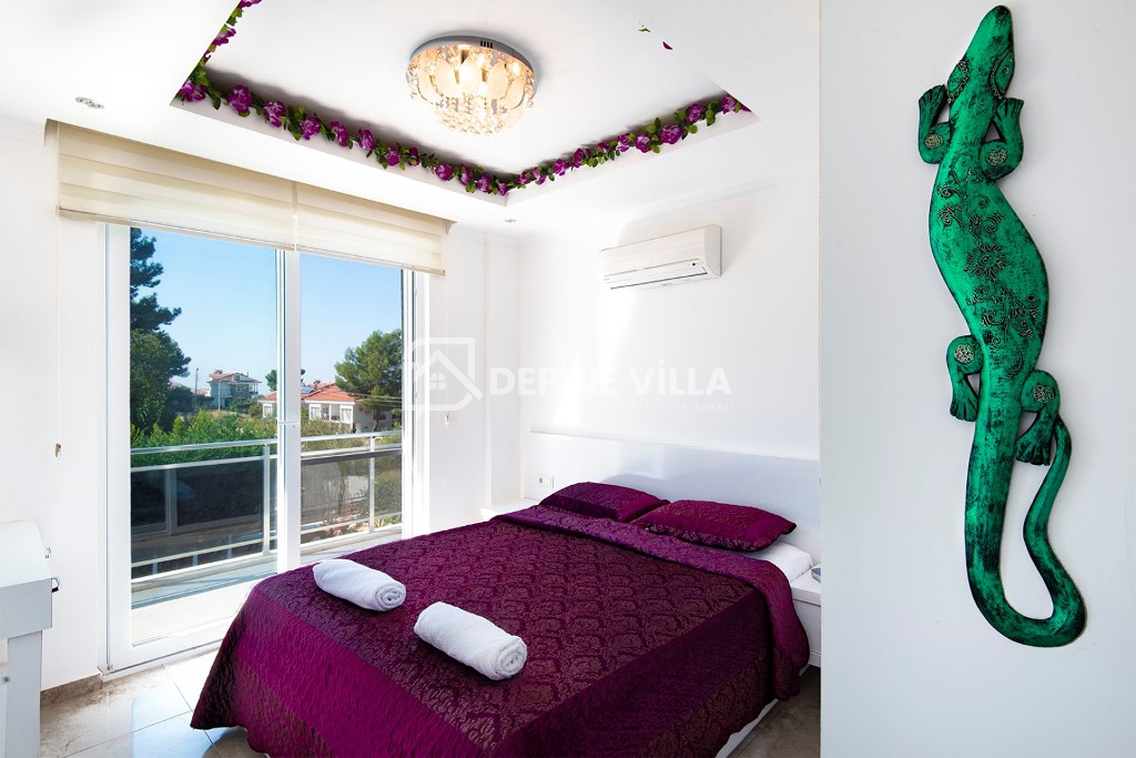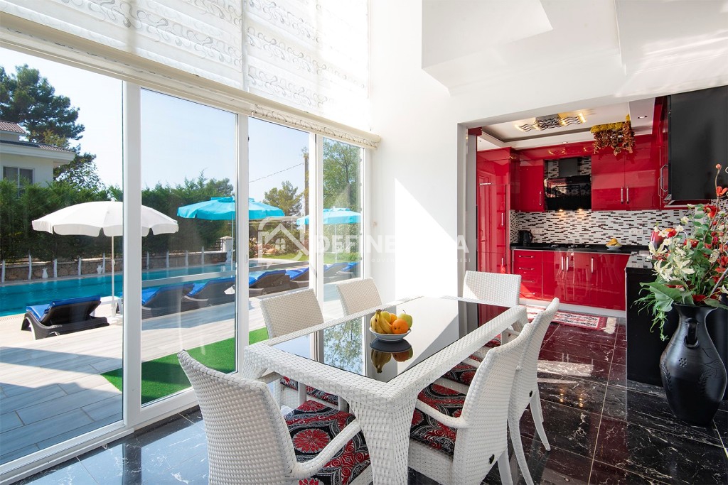 Villada 4 adet ebeveyn banyolu yatak odası bulunmakta olup, müstakil bahçesi ve özel yüzme havuzu sayesinde misafirlerine konforlu ve özgür bir yaşam alanı sağlamaktadır. Korunaklı havuz alanı, mahremiyete önem veren aileler için uygun bir ortam sunmaktadır.